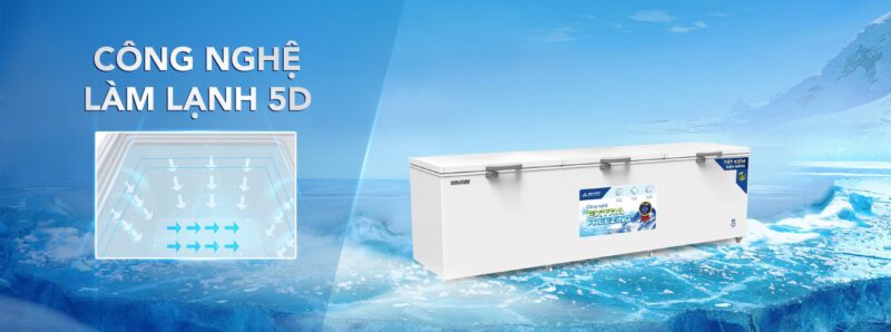- Công nghệ làm lạnh trực tiếp đặt dưới thân tủ đông, giúp hơi lạnh được lan tỏa đều khắp tủ